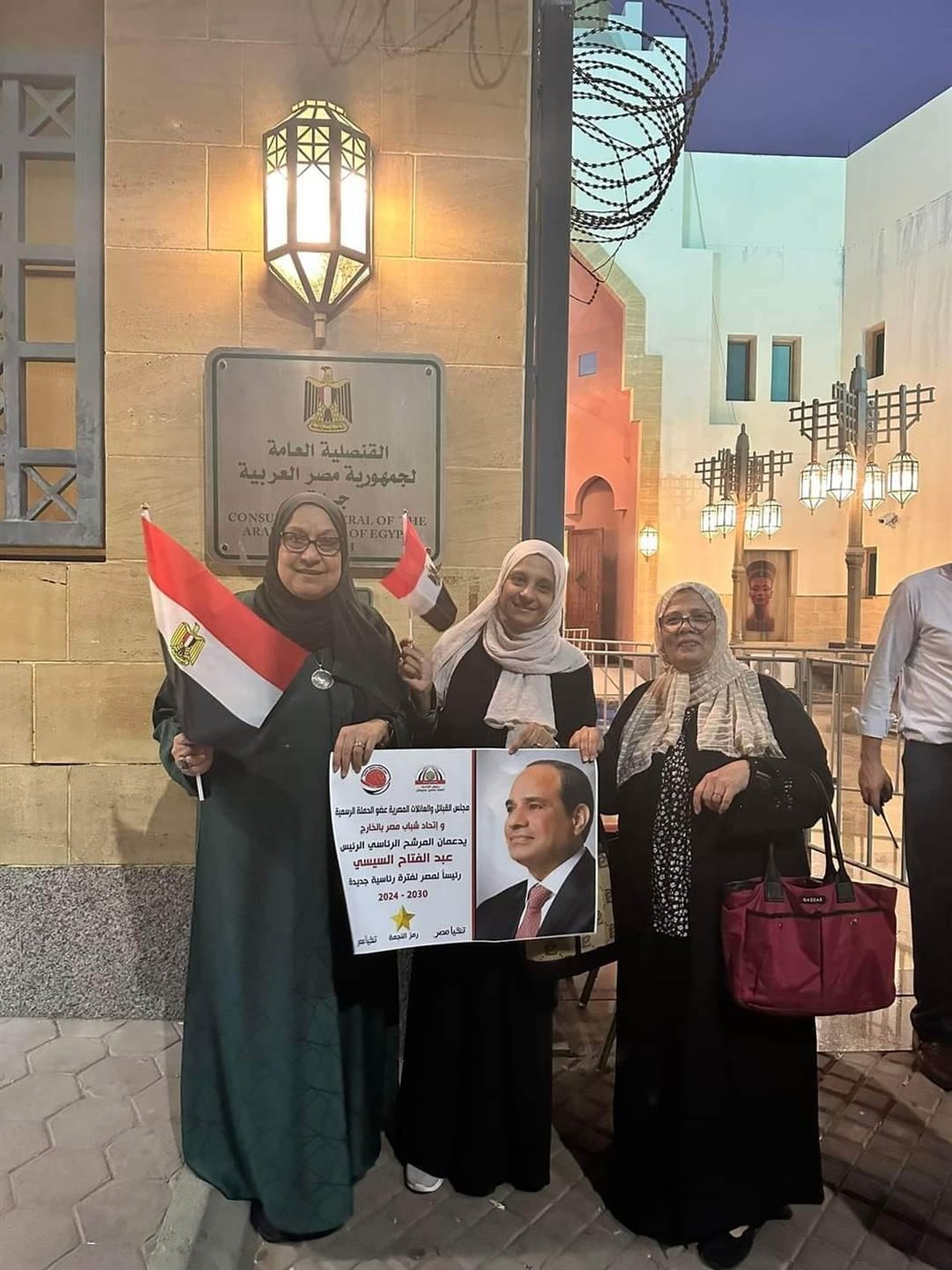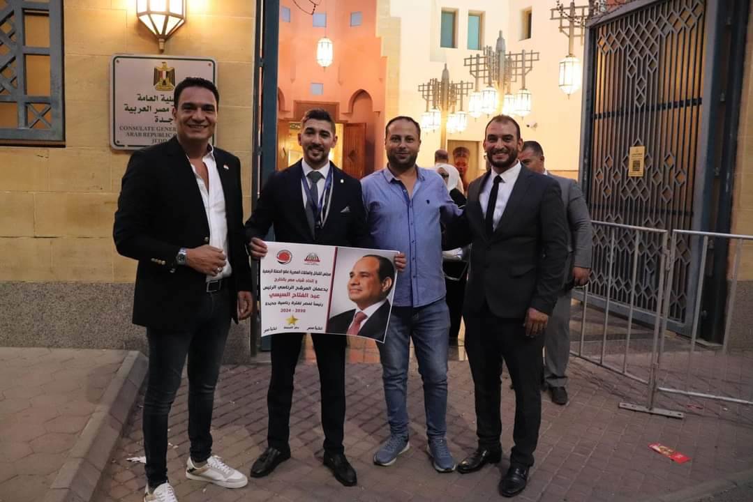 وأكد عضو ومنسق اتحاد شباب مصر بالخارج في جدة الدكتور أحمد السيد ان المصريين بالخارج خير سفراء لوطنهم الحبيب مصر داعمين لوطنهم مؤمنين به وقد أتوا من كل مكان وحتى امهاتنا من ذوي الهمَ ضربوا أروع الأمثال في تصدر الصفوف وأننا كأعضاء اتحاد شباب مصر بالخارج فخورون بوطننا وحملنا شعار اتحاد شباب مصر بالخارج وشعار مجلس القبائل والعائلات المصربة شريك الحملة الرسمية، لدعم مرشحنا الرئاسي السيد عبد الفتاح السيسي، ويضيف حمادة الغلبان عضو اتحاد شباب مصر بالخارج بالكويت أن المصريين بالخارج ضربوا أروع الأمثال في حب الوطن منذ أمس وكان التواجد الكثيف هو خير عنوان لذلك وفخور بحمل شعار اتحادنا اتحاد شباب مصر بالخارج لدعم مرشحنا الرئاسي السيد عبدالفتاح السيسي.