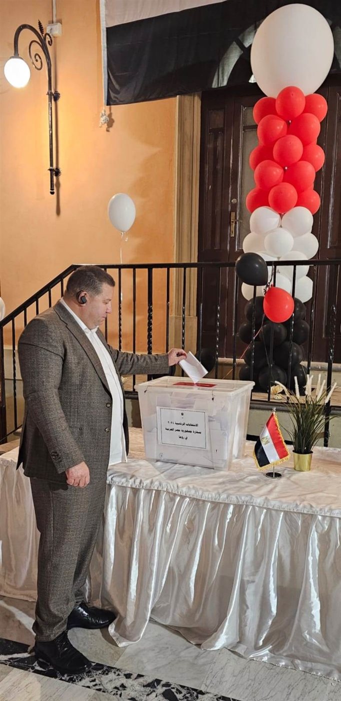 وبدوره أدلي اسلام السويسي منسق حملة كمل جميلك بالاتحاد الأوروبي والعضو البارز في الجالية المصرية، بصوته خلال الساعات الأخيرة لسباق الانتخابات الرئاسية بمقر السفارة المصرية بروما.