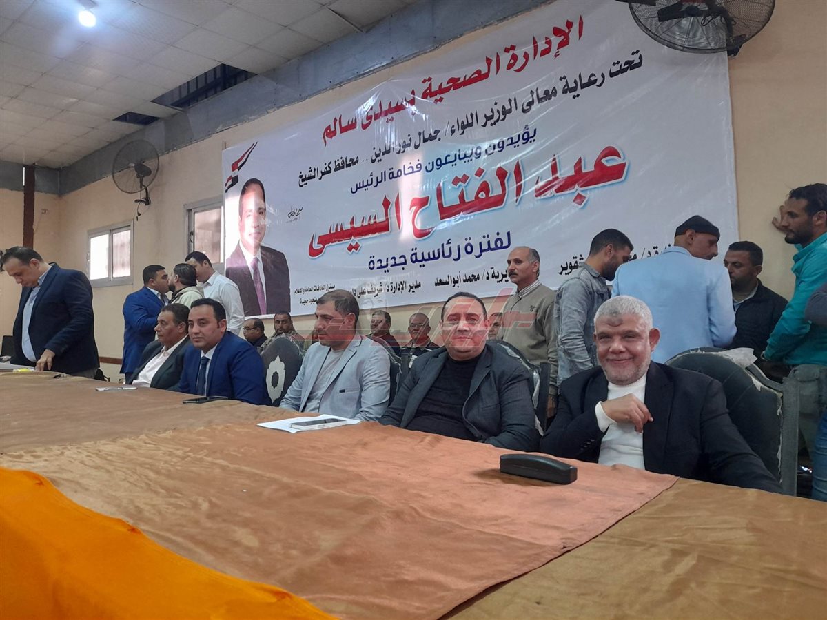 نظمت الإدارة الصحية بسيدي سالم التابعة لمديرية الشؤون الصحية بمحافظة كفر الشيخ، مؤتمراً جماهيرياً حاشداً لدعم الرئيس عبدالفتاح السيسي رئيس الجمهورية في الانتخابات الرئاسية 2024 والمقرر إنعقادها في أيام 10 و11 و12 من شهر ديسمبر الجاري.
