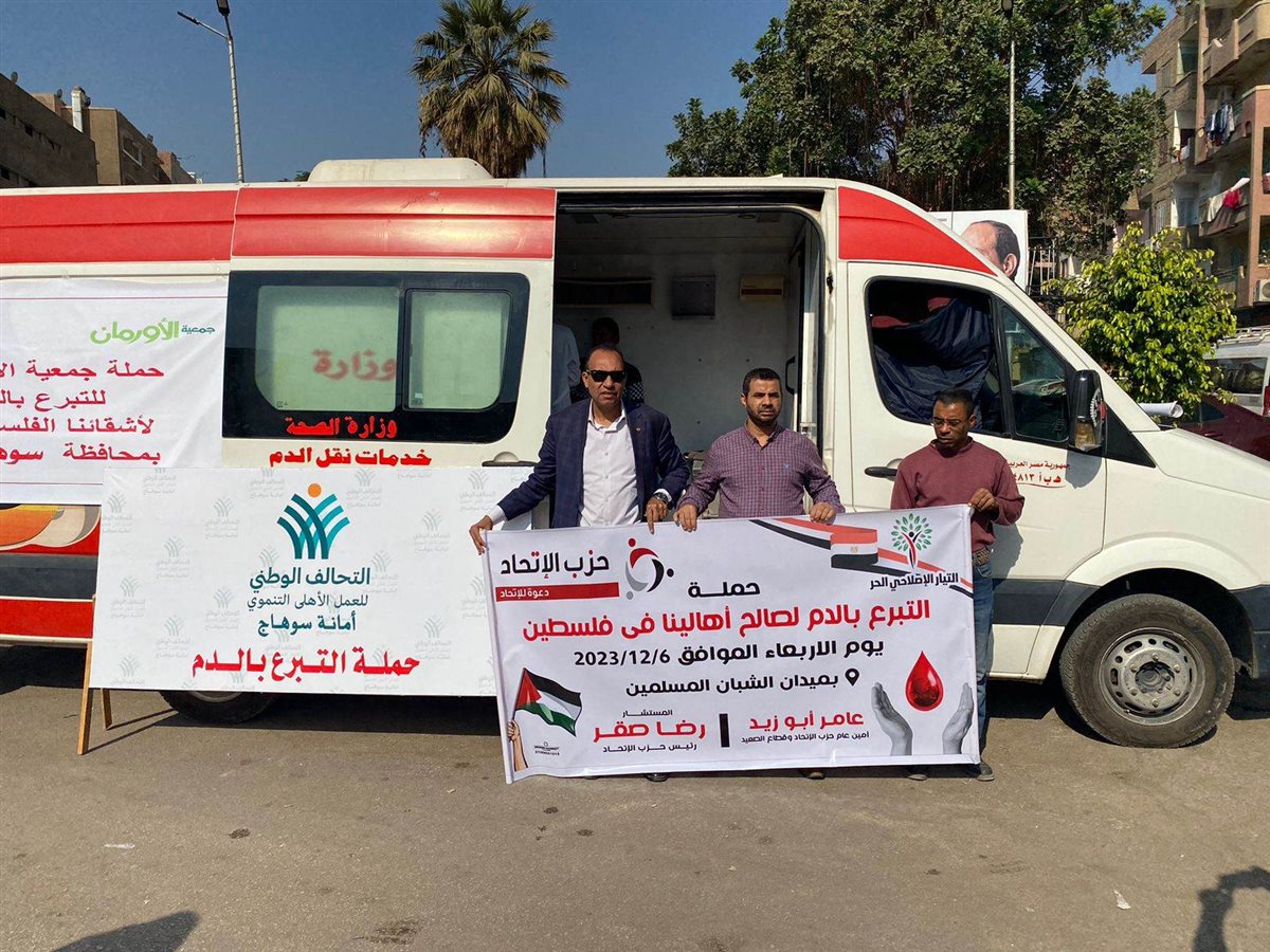 حزب الاتحاد يشارك في حملة التبرع بالدم بسوهاج لصالح أهالي غزة
