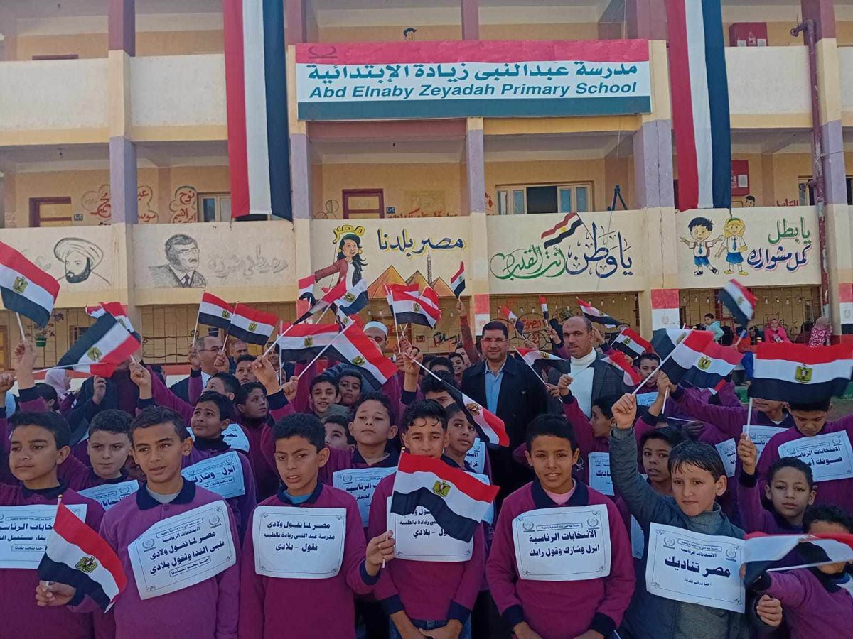 مسيرة لتلاميذ مدرسة عبدالنبي زيادة بالدقهلية لدعم المشاركة في الانتخابات الرئاسية