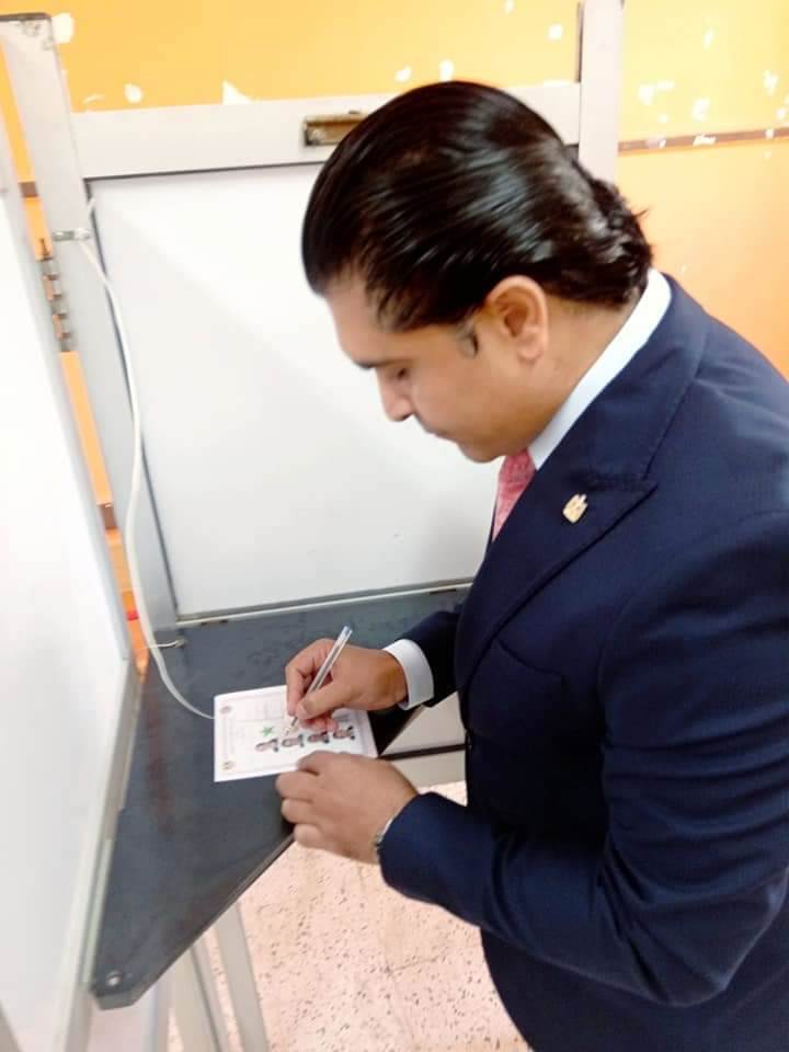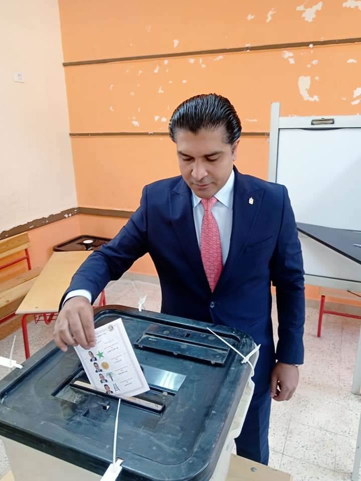 أحمد سمير رئيس اتحاد الميني فوتبول يشارك في اليوم الأول من الانتخابات الرئاسية