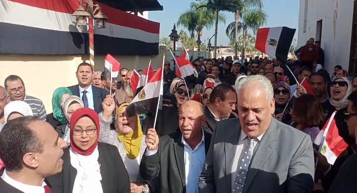 ورفع المشاركون الأعلام المصرية ورددوا الأغانى الوطنية المحفزة على المشاركة فى الانتخابات فى مشهد احتفالى مميز، كما رددوا الهتافات الحماسية.