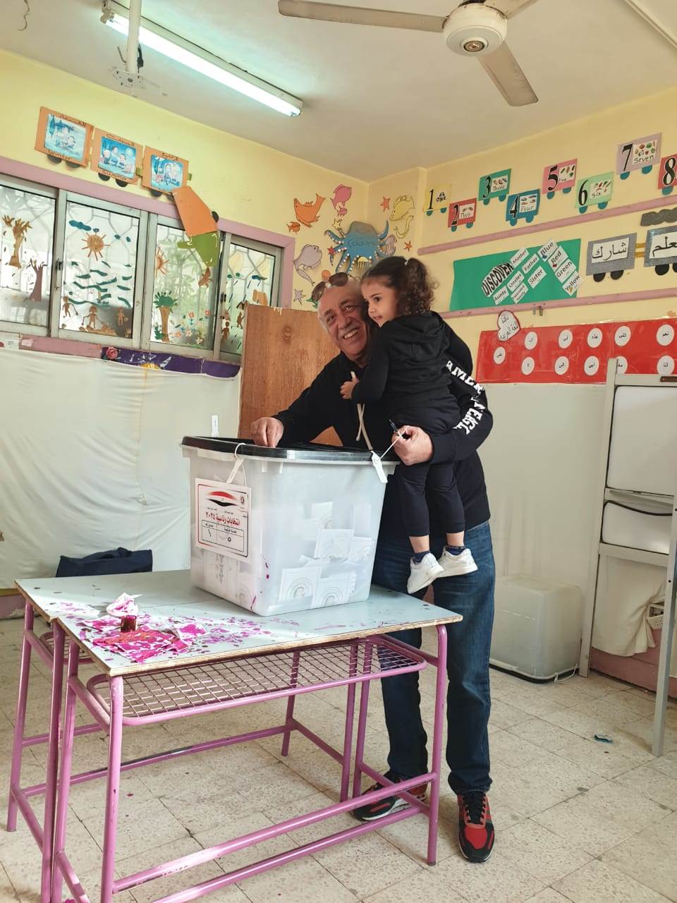 فتحي سند يصطحب حفيدته للإدلاء بصوته في الانتخابات الرئاسية