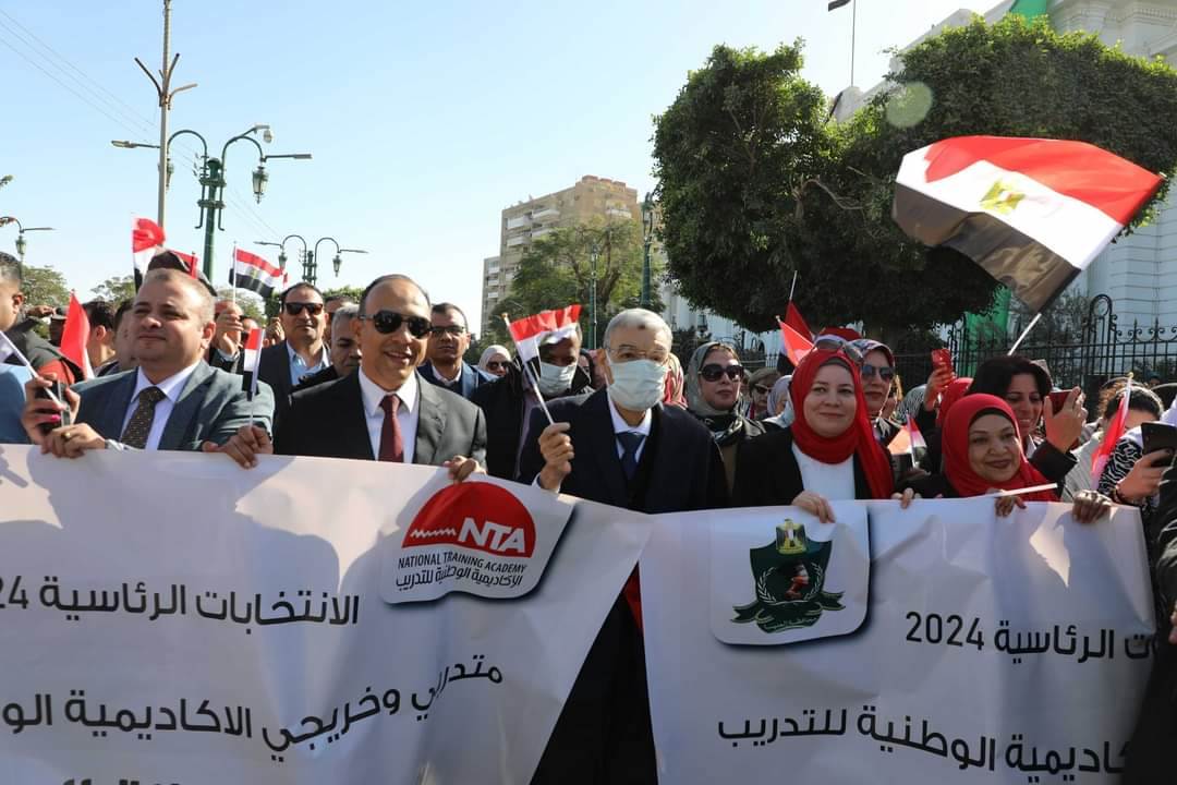 جاء ذلك خلال مشاركة المحافظ بمسيرة نظمتها الأكاديمية الوطنية للتدريب، لحث المواطنين علي المشاركة في الانتخابات الرئاسية 2024، ودعوتهم لاختيار من يرونه قادر على قيادة مسيرة الوطن خلال السنوات الست القادمة ، وذلك بحضور عدد من القيادات التنفيذية النسائية وممثلي المجلس القومي للمرأة وإدارة الأمومة والطفولة بديوان عام المحافظة والشباب والرياضة ومكتبة مصر العامة، حيث بدأت المسيرة من أمام مبني ديوان عام المحافظة وحتى نادي المنيا الرياضي.