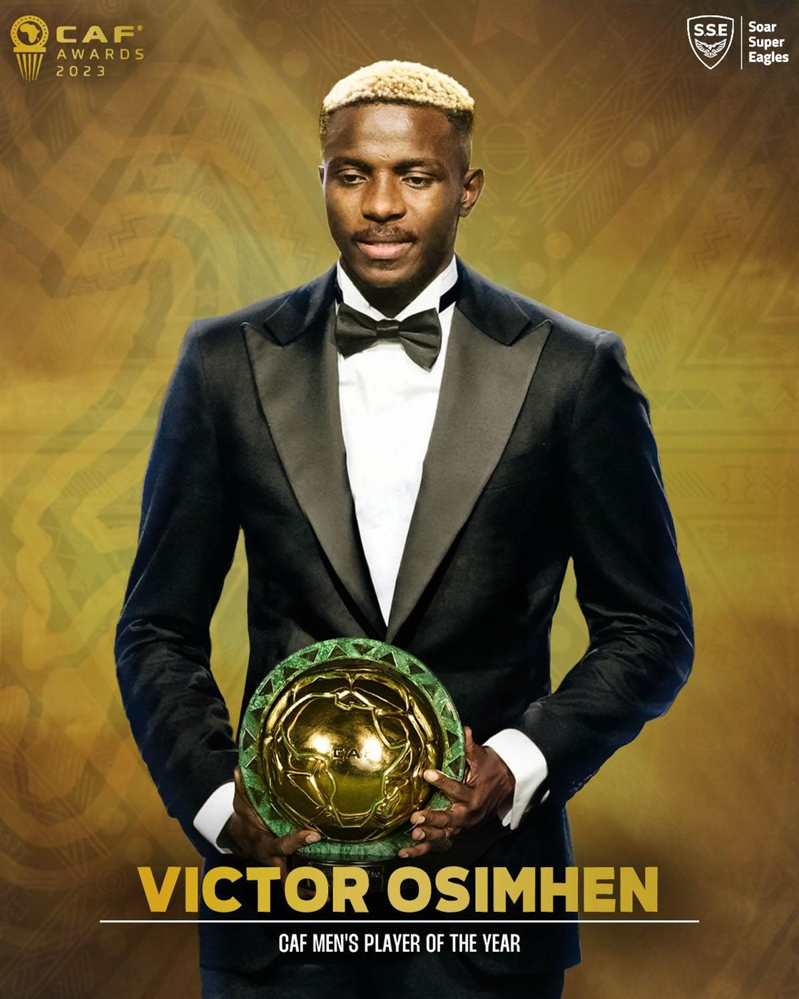 حصد الدولي النيجيري فيكتور أوسيمين، نجم فريق نابولي الإيطالي، جائزة أفضل لاعب إفريقي عن عام 2023، خلال حفل الاتحاد الإفريقي لكرة القدم، لتوزيع جوائز الأفضل في إفريقيا عن عام 2023، والذي أقامه بمدينة مراكش المغربية، وهي المرة الثانية على التوالي التي تستضيف فيها المغرب الحفل الإفريقي.