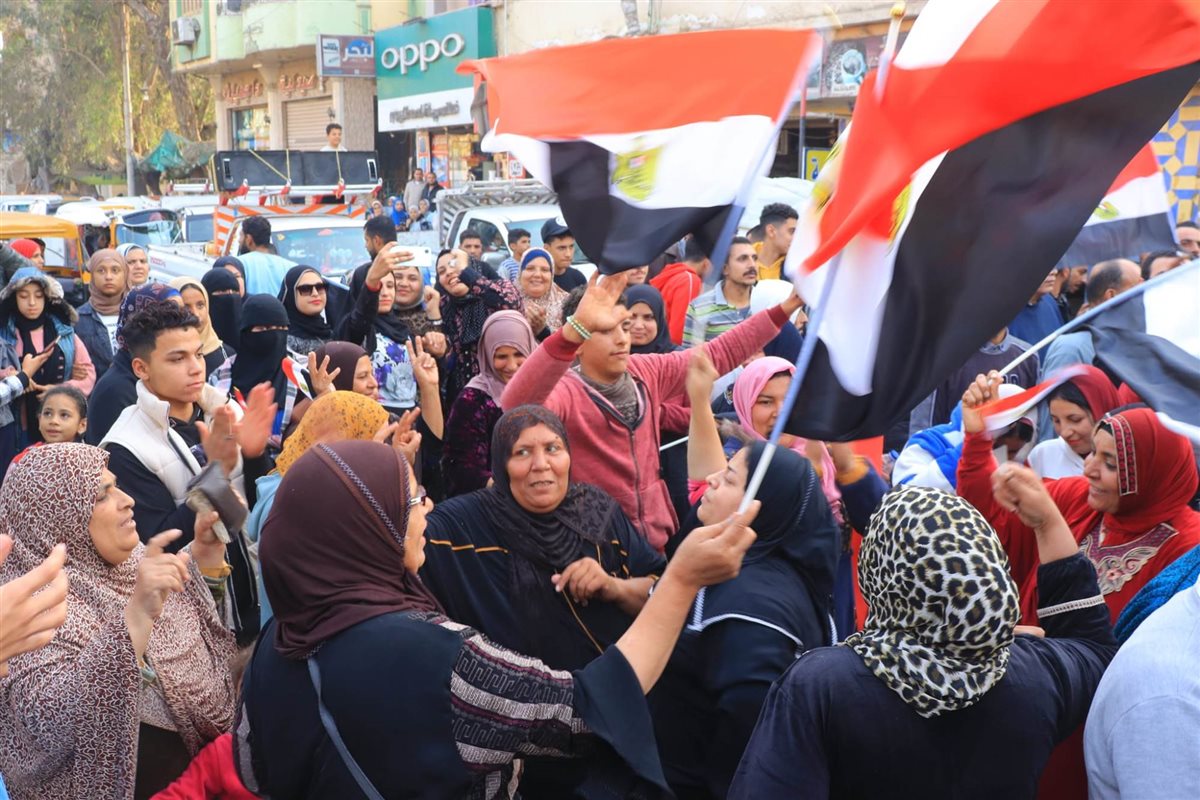 وانطلقت المسيرة ظهر اليوم الثلاثاء، آخر أيام الانتخابات الرئاسية، وتصدرت السيدات المشهد بتواجد كثيف، وجابت أرجاء المدينة وصولًا للجان الانتخابية، وسط حالة من البهدة والفرحة.