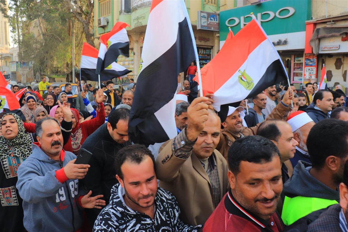 مسيرة بالأعلام المصرية تجوب "بني عبيد" للحث على المشاركة في الانتخابات الرئاسية