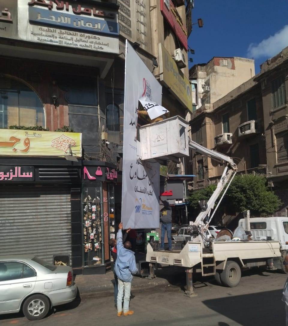 حملات مُكبرة لإزالة الإعلانات واللافتات المخالفة بأحياء الإسكندرية