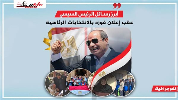 منوعات أبرز رسائل الرئيس السيسي عقب إعلان فوزه بالانتخابات الرئاسية انفوجرافيك: داليا عبدالمعز الثلاثاء 19/ديسمبر/2023 - 06:36 م 12/19/2023 6:36:09 PM # الرئيس السيسى # رسائل الرئيس السيسي # الانتخابات الرئاس