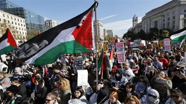 تظاهر الآلاف في مدينة نيويورك بالولايات المتحدة، الثلاثاء، دعما لفلسطين وللمطالبة بوقف العدوان الإسرائيلي المتواصل على قطاع غزة.