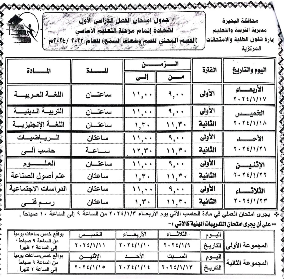 و الشهادة الإعدادية للصم وضعاف السمع من الأربعاء 17 يناير 2024 وحتى الثلاثاء 23 يناير 2024.
