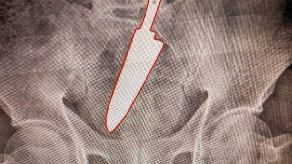 وأضاف أن السكين عبر مسافة كبيرة داخل القولون، وتبين أن استخدام المنظار قد يؤدي إلى إصابة القولون أثناء خروج الجسم الحاد، إلا أن الفريق الطبي نجح في استخراجه بحرص شديد، وذلك بعمل فتحة صغيرة حتى لا تصيب مجرى القولون أو المستقيم.