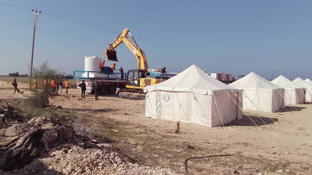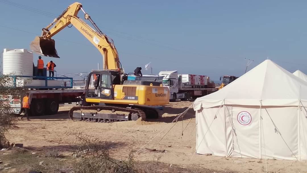 يعمل الهلال الأحمر المصري علي مدار الساعة بالتعاون مع نظيره الفلسطينى علي الانتهاء من تجهيز مخيم لإيواء النازحين بحنوب غرب خانيونس.