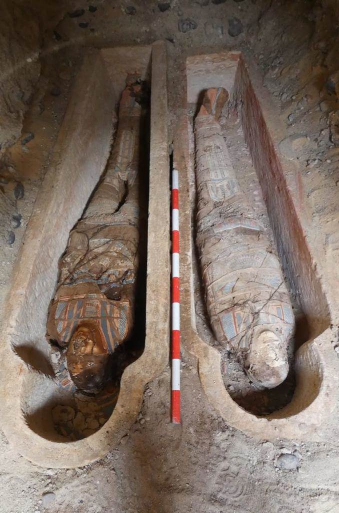 وقال د. جمال السمسطاوي مدير عام آثار مصر الوسطي أن التصميم المعماري للمقابر في هذا الموقع عبارة عن بئر من الحجر ينتهي بباب مغلق بالطوب اللبن يؤدي إلى حفرة كبيرة عثر بداخلها على مجموعة من التوابيت الفارغة وأخري مغلقة بداخلها مومياوات مغطاه بالكارتوناج الملون، مضيفا أن العثور علي 23 مومياء محنطة خارج التوابيت، وأربعة توابيت دات شكل آدمي يوجد بداخل أحدهما مومياوتين وقنينات عطور نذرية صغيرة.