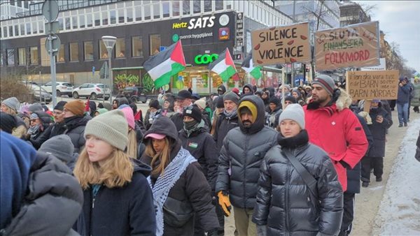 شهدت العاصمة السويدية ستوكهولم، اليوم الأحد، مظاهرة أمام السفارة الأمريكية، احتجاجا على عدوان الاحتلال الإسرائيلي على قطاع غزة.