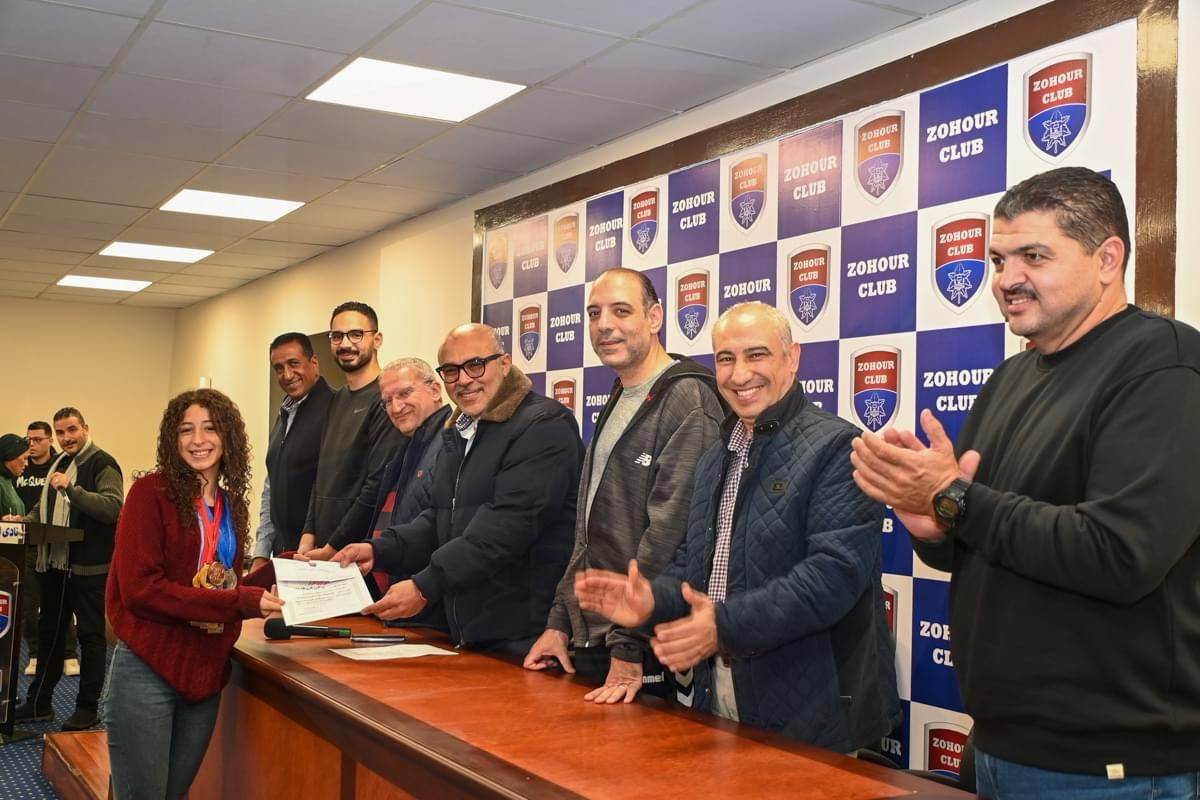 وأقيم التكريم بقاعة السينما بالفرع الرئيسي بمدينة نصر بحضور المستشار محمد الدمرداش رئيس النادي، والمستشار إيهاب الشريطي نائب رئيس النادي، والأستاذ علي عادل أمين الصندوق، والأستاذ محمد مطيع سكرتير عام النادي، بالإضافة إلى دكتور أحمد عبد الفتاح مساعد مدير النادي للنشاط الرياضي وكابتن أحمد الليثي مدير النشاط الرياضي. وخلال التكريم توجه المستشار محمد الدمرداش بالشكر للاعبين وأسرهم والجهاز الفني على المجهود الكبير الذين يبذلونه، والذي اسفر عن هذه النتائج الجيدة التي بدأت تتحقق في واحدة من أصعب الرياضات الفردية والتي كان نادي الزهور بعيدًا عن منصات التتويج في السابق، ولكن الآن بفضل تضافر جهود الجميع مع إدارة النشاط الرياضي بالنادي بدأت النتائج في التحسن بشكل كبير ليصعد أبطال الزهور على منصات التتويج المحلية وايضًا الأفريقية.