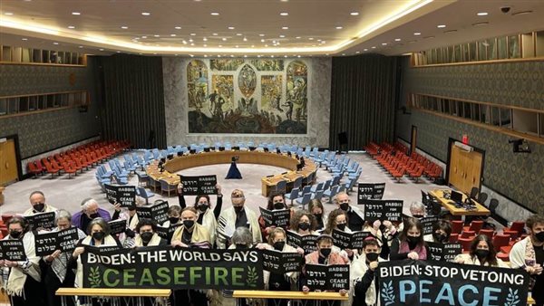 احتج نحو 36 حاخاما وطالبا للعلوم الدينية من منظمات أمريكية في الأمم المتحدة ، مطالبين بوقف إطلاق النار في غزة وحثوا إدارة الرئيس الأمريكي جو بايدن على عدم عرقلة تحركات من هذا القبيل في مجلس الأمن باستخدام حق النقض (الفيتو).