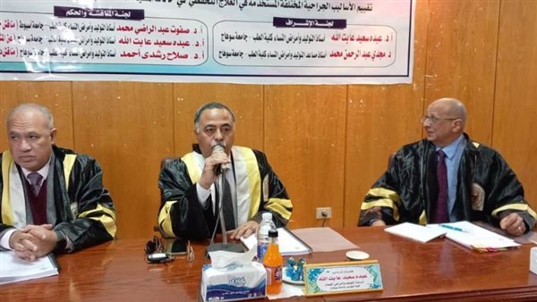شهد قسم التوليد وأمراض النساء بكلية الطب البشري بجامعة سوهاج، مناقشة رسالة ماجستير بعنوان "تقييم الأساليب الجراحية المختلفة المستخدمة في العلاج التحفظي في حالات المشيمة الملتصقة بمستشفى سوهاج الجامعي" المقدمة من الباحث عبد الله أحمد رفعت طبيب مقيم بقسم التوليد وأمراض النساء كلية الطب جامعة سوهاج، وذلك بقاعة الدكتور محمود رياض بمستشفى سوهاج الجامعي القديم.