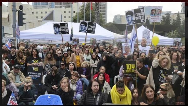 فيما توقفت الحية لمدة 100 دقيقة في الكيان الصهيوني بفلسطين المحتلة، وقف ألاف المتظاهرين الإسرائيليين صامتين لمدة 100 ثانية، بساحة الأسرى لدي المقاومة الفلسطينية حماس، في بداية إضراب تحديد الهوية.