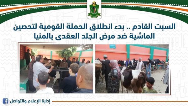 أعلن اللواء أسامة القاضى محافظ المنيا انطلاق الحملة القومية لتحصين رؤوس الماشية من الأبقار، والأغنام، والماعز، ضد مرض الجلد العقدي بدءا من السبت القادم الموافق 27 يناير الجاري، بجميع الوحدات البيطرية المنتشرة بمراكز وقرى المحافظة، للحفاظ على الثروة الحيوانية وزيادة إنتاجيتها.