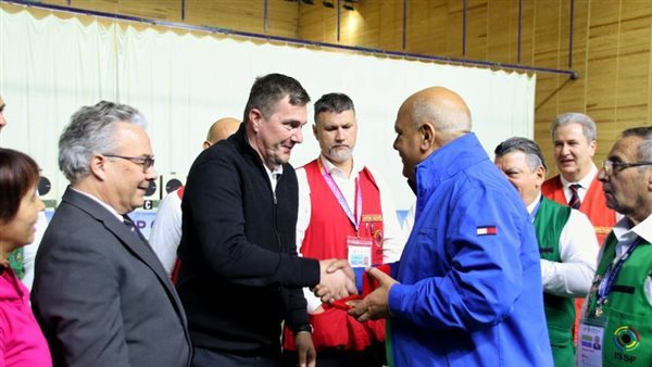 كرم اللواء حازم حسني رئيس الاتحاد المصري والإفريقي للرماية حكام بطولة العالم للرماية، وعلى رأسهم السلوفينى روبرت فيرينشاك المندوب الفني للاتحاد الدولي للرماية على هامش منافسات اليوم.