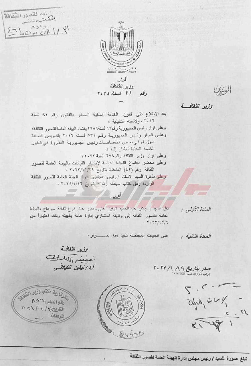 في استجابة لتحقيقات روز اليوسف.. وزيرة الثقافة تنهي تكليف مدير ثقافة سوهاج