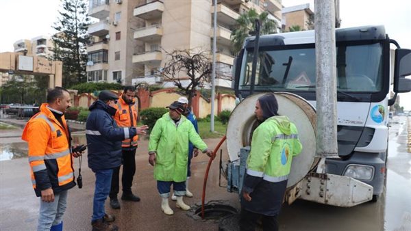 رئيس صرف الإسكندرية في جولة لتفقد التعامل مع مياه الأمطار الغزيرة