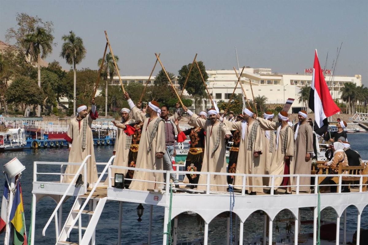 وبعروض فنية على القوارب الشراعية، قدمت الفرق المصرية والأجنبية جانبا من عروضها الاستعراضية التي تعبر عن تراثها وهويتها، رافعين الأعلام وسط تفاعل من الجمهور على جانبي النيل.