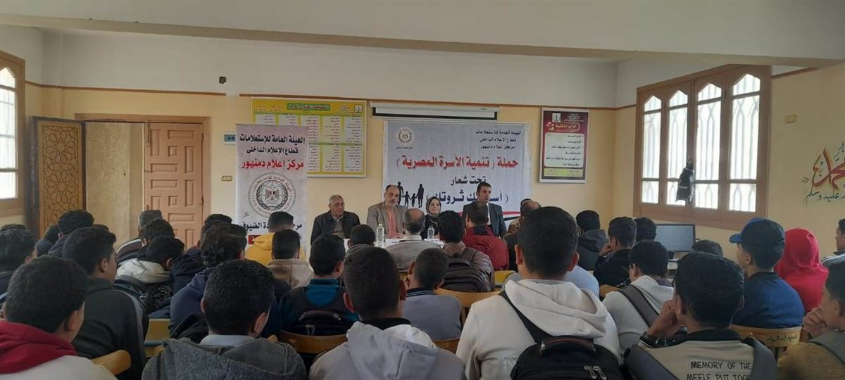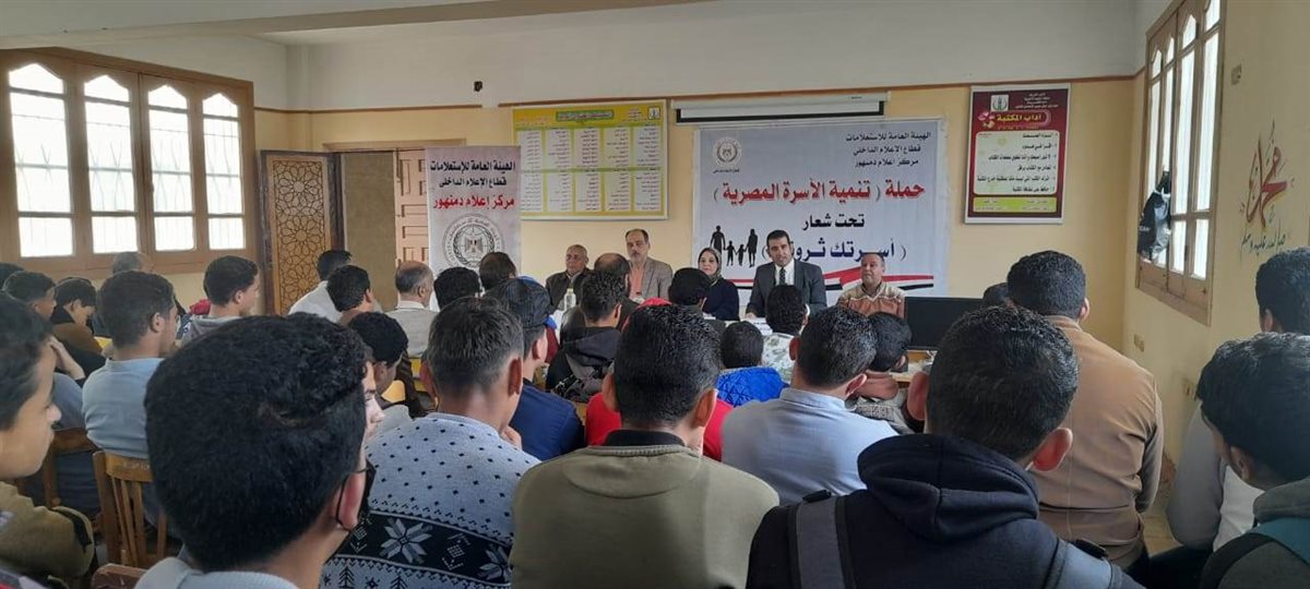 نظم مركز إعلام دمنهور لقاء توعوى فى إطار فعاليات حملة "تنمية الأسرة المصرية" تحت شعار أسرتك.. ثروتك حول "استراتيجيات تعزيزدورالشباب فى تحقيق أهداف مشروع تنمية الأسرة المصرية"، وذلك بالمعهد الثانوي الأزهري بحوش عيسى، بحضور الدكتور سعيد عشيبه استاذ العلوم الاجتماعية بكلية التربية جامعة دمنهور، عبد الوهاب خاطر مدير المعهد، عبد الهادي السماك وكيل المعهد الشرعى، بمشاركة عدد كبير من الطلبة وأعضاء هيئة التدريس.