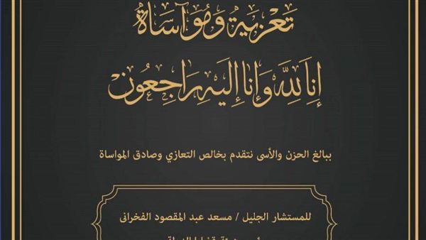 قضايا الدولة والنيابة الإدارية تنعى شقيق المستشار مسعد الفخراني