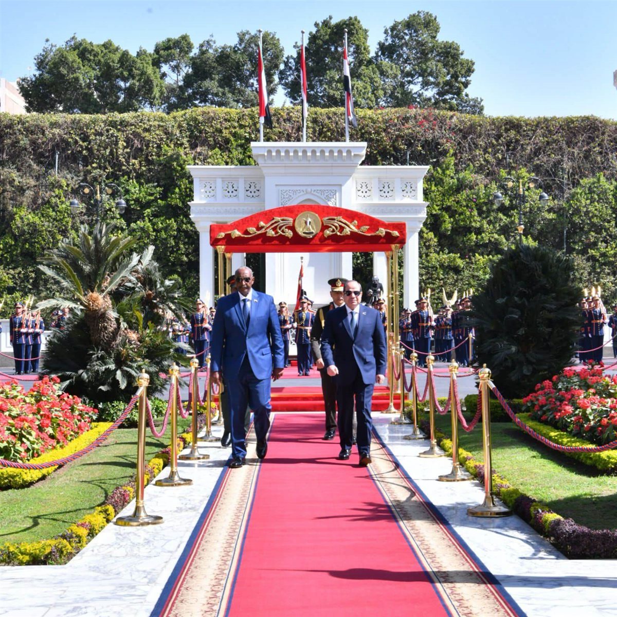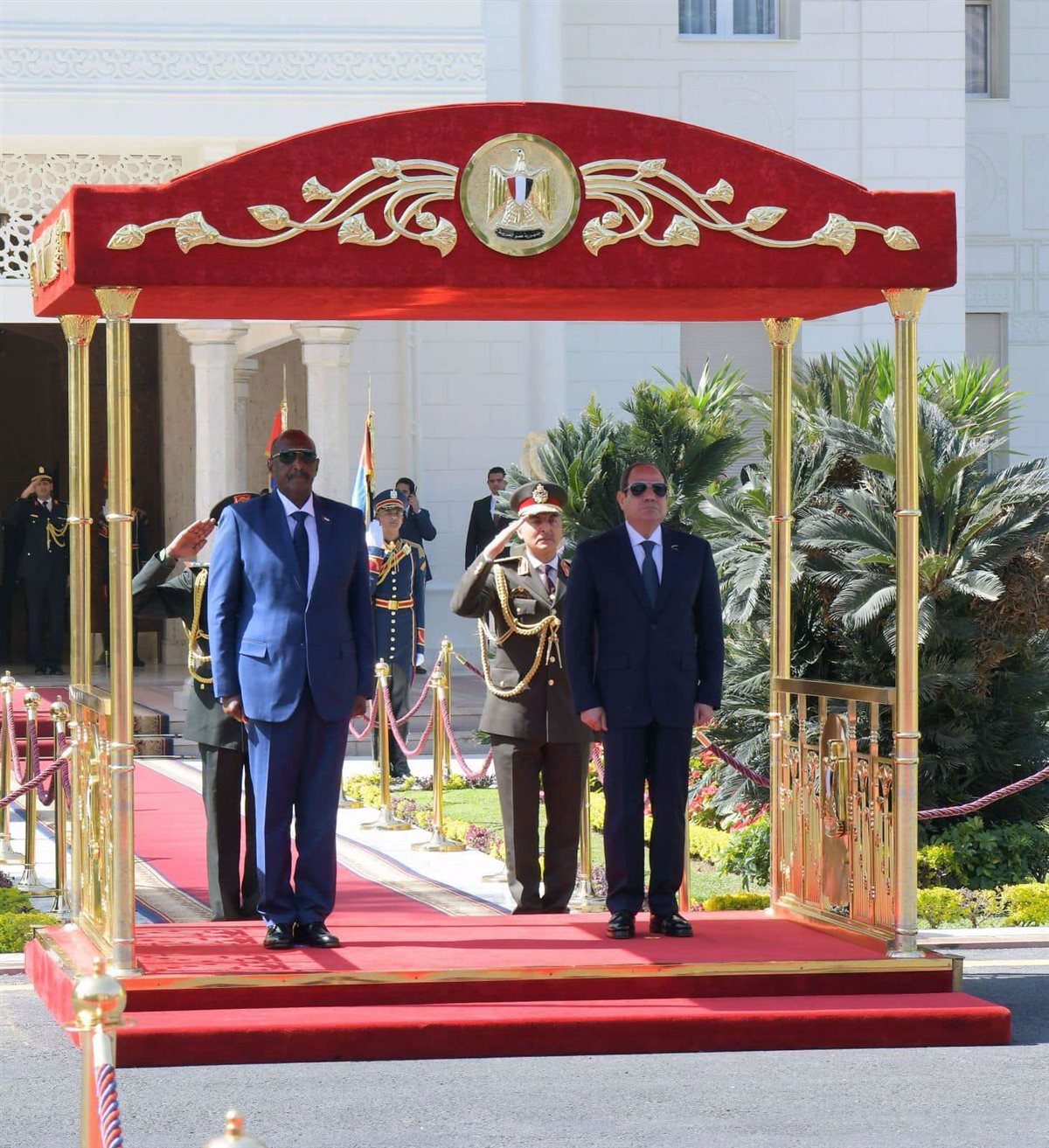 استقبل الرئيس عبد الفتاح السيسي اليوم بمطار القاهرة الدولي، الفريق أول ركن عبد الفتاح البرهان، رئيس مجلس السيادة الانتقالي السوداني. وقد أقيمت مراسم الاستقبال الرسمي بقصر الاتحادية، وتم استعراض حرس الشرف، وعزف السلامين الوطنيين.