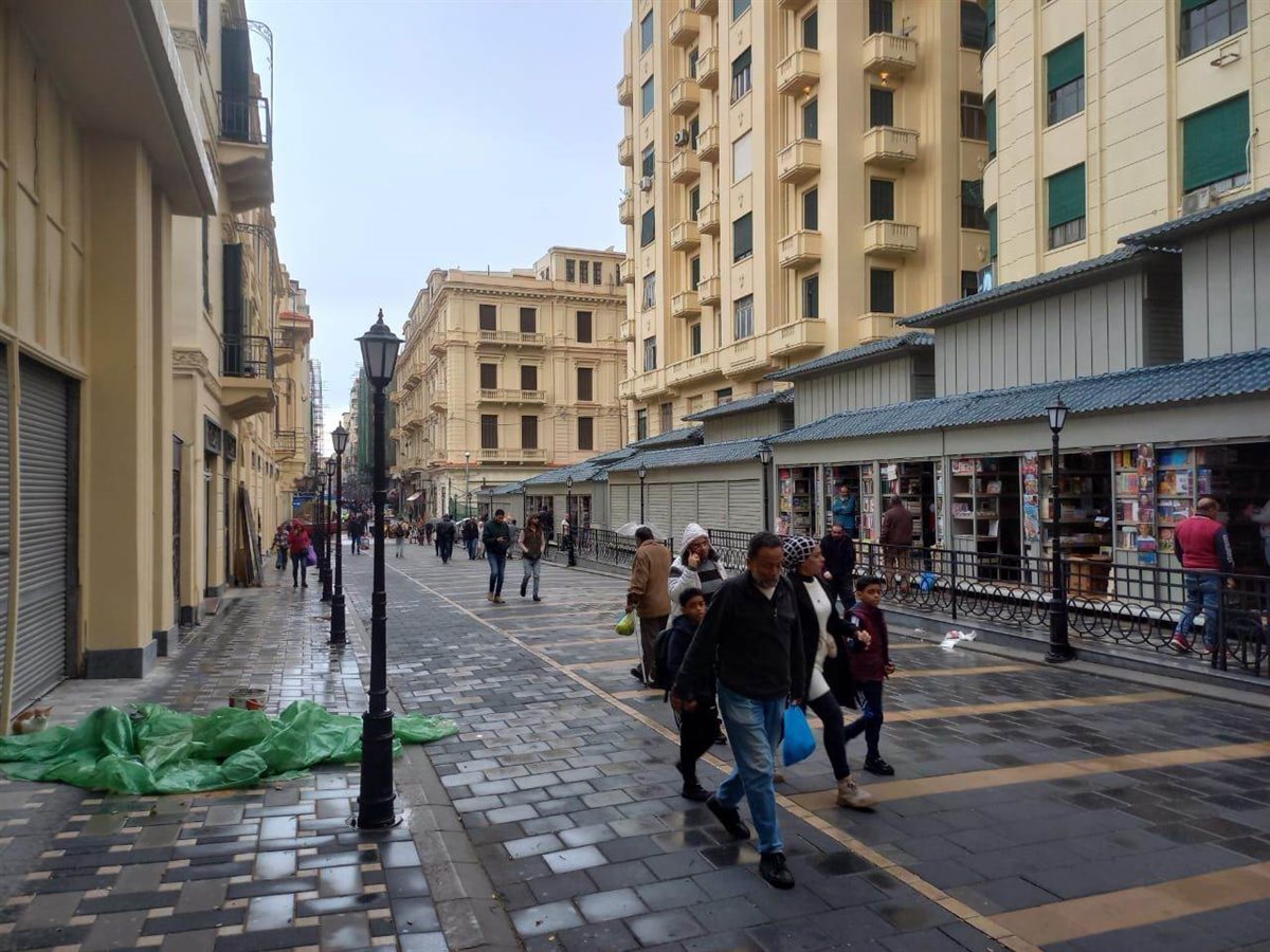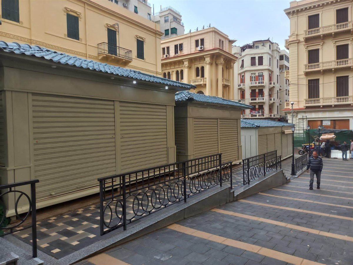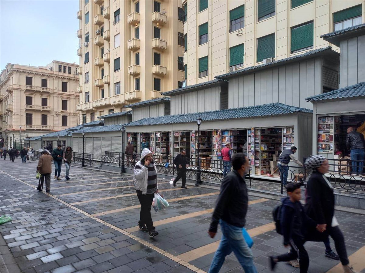 وتمت معالجة أكشاك بيع الكتب بأسلوب حضاري مناسب لا يعوق حركة المشاة. مع استغلال الممرات بين المباني لخلق فراغات مميزة تلائم الطابع المعماري للشارع.
