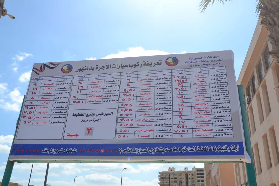وتفقد محمد كچك رئيس مركز ومدينة دمنهور، مجمع مواقف سيارات الأجرة للتأكد من التزام السائقين بالتعريفة الجديدة ومتابعة وضع بنرات ولوحات إرشادية بالتعريفة الجديدة بالمواقف ووضع ستيكرات بالتعريفة وتطبيق العقوبات الرادعة على المخالفين.