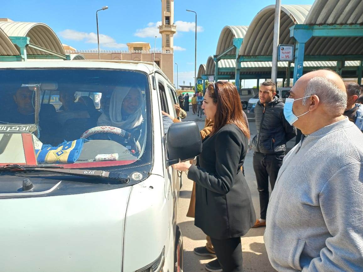 والتقت نائب المحافظ عددا من الركاب داخل مجمع المواقف واطمأنت منهم على حسن سير العمل وعدم وجود أى معوقات وعدم زيادة السائقين لتعريفة الركوب الجديدة المقررة بجميع الخطوط.