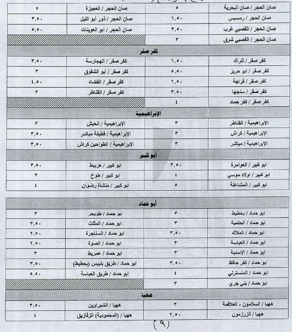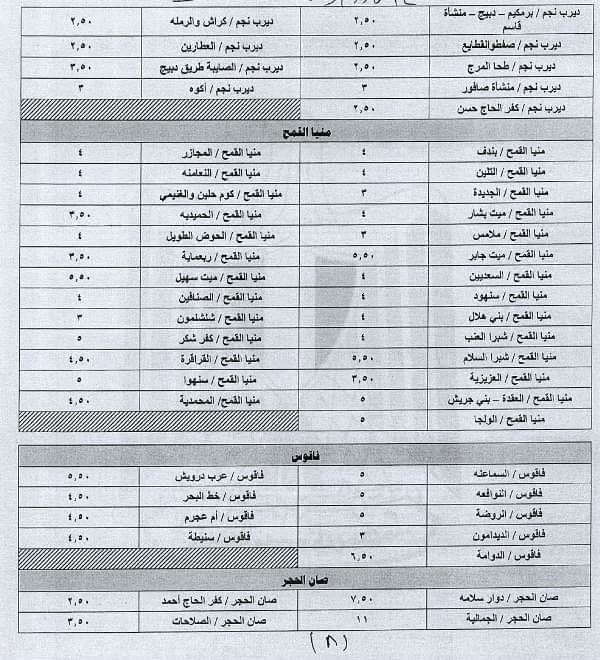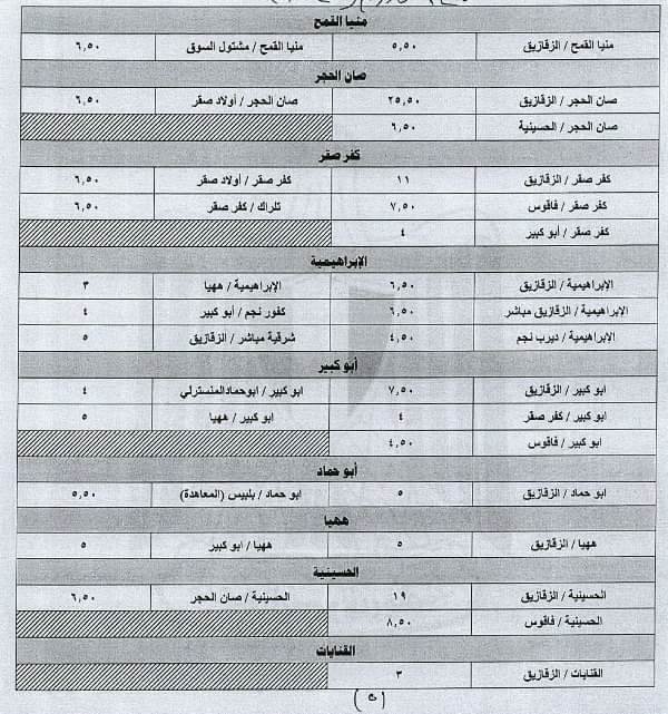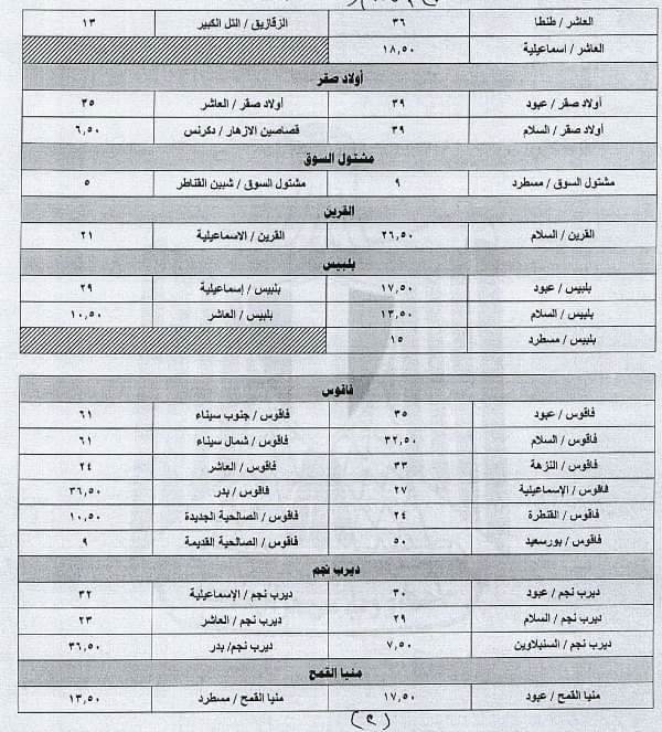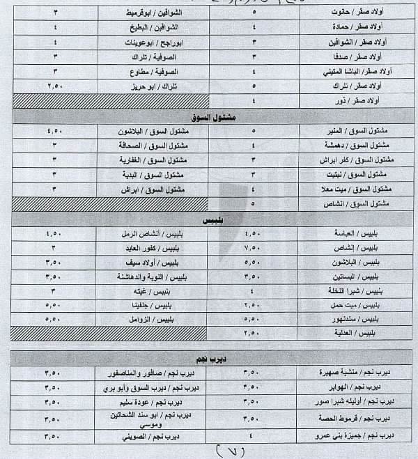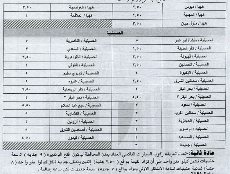 وجاءت أسعار تعريفة ركوب المواصلات في جميع أنحاء مراكز ومدن محافظة الشرقية كالتالي: