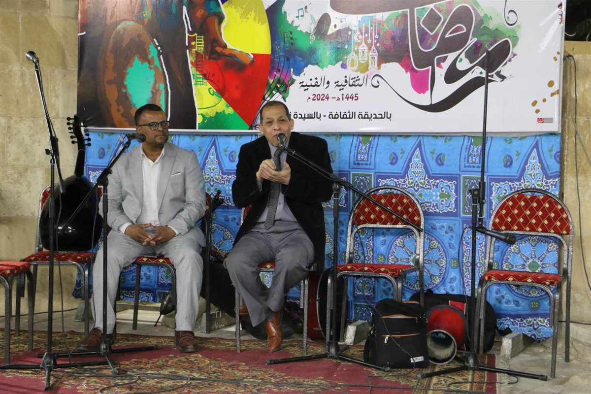 شهدت الحديقة الثقافية بالسيدة زينب، فعاليات الليلة الرابعة من ليالي رمضان الثقافية والفنية، التي تنظمها الهيئة العامة لقصور الثقافة برئاسة عمرو البسيوني، في إطار برامج وزارة الثقافة.