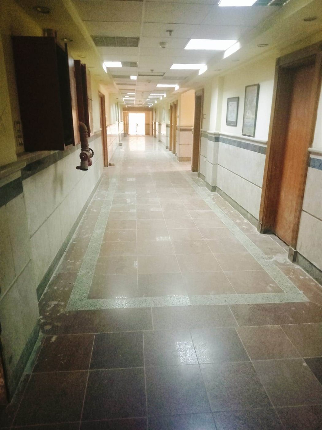 أما بالنسبة للمسرح فخشبة المسرح تعمل بكامل كفاءتها، ويتم ضبط حركة اداء بعض الفرق منذ فترة قبل إقامة العروض وقد انتهت، علما بأن جميع العاملين بالأمن تم تدريبهم على أعمال الحماية المدنية بنسبة 100%، وأنه يتم اتخاذ كل الاحتياطات الأمنية أثناء إقامة الانشطة، كما أن الأماكن التي تقوم الشركة المنفذة لأعمال الصيانة بعمل صيانة لها محاطة بسور خشبي لتأمين عدم الدخول لها.