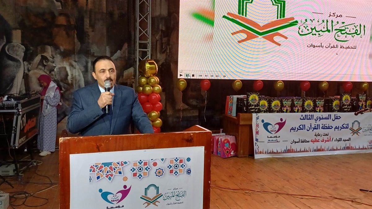 وفى كلمته أكد فضيلة الشيخ محمد الاحسن رئيس الإدارة العامة لشؤون القرآن بمنطقة أسوان الأزهرية، على حرص المنطقة الأزهرية بأسوان، المشاركة فى أى فعاليات لتكريم حفظة القرآن الكريم، ايمانا بفضل حافظ القرآن فى الدنيا والآخرة، حيث أن أهل القرآن هم أهل الله وخاصته، وهم على منابر من نور يوم القيامة مع النبيين والصديقين والشهداء والصالحين.
