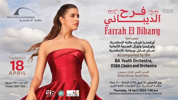 تحيي الحفل خريجة المدرسة مغنية الأوبرا المصرية العالمية فرح الديباني بمصاحبة أوركسترا شباب مكتبة الإسكندرية، وكورال، وأوركسترا مدرسة سان شارل.