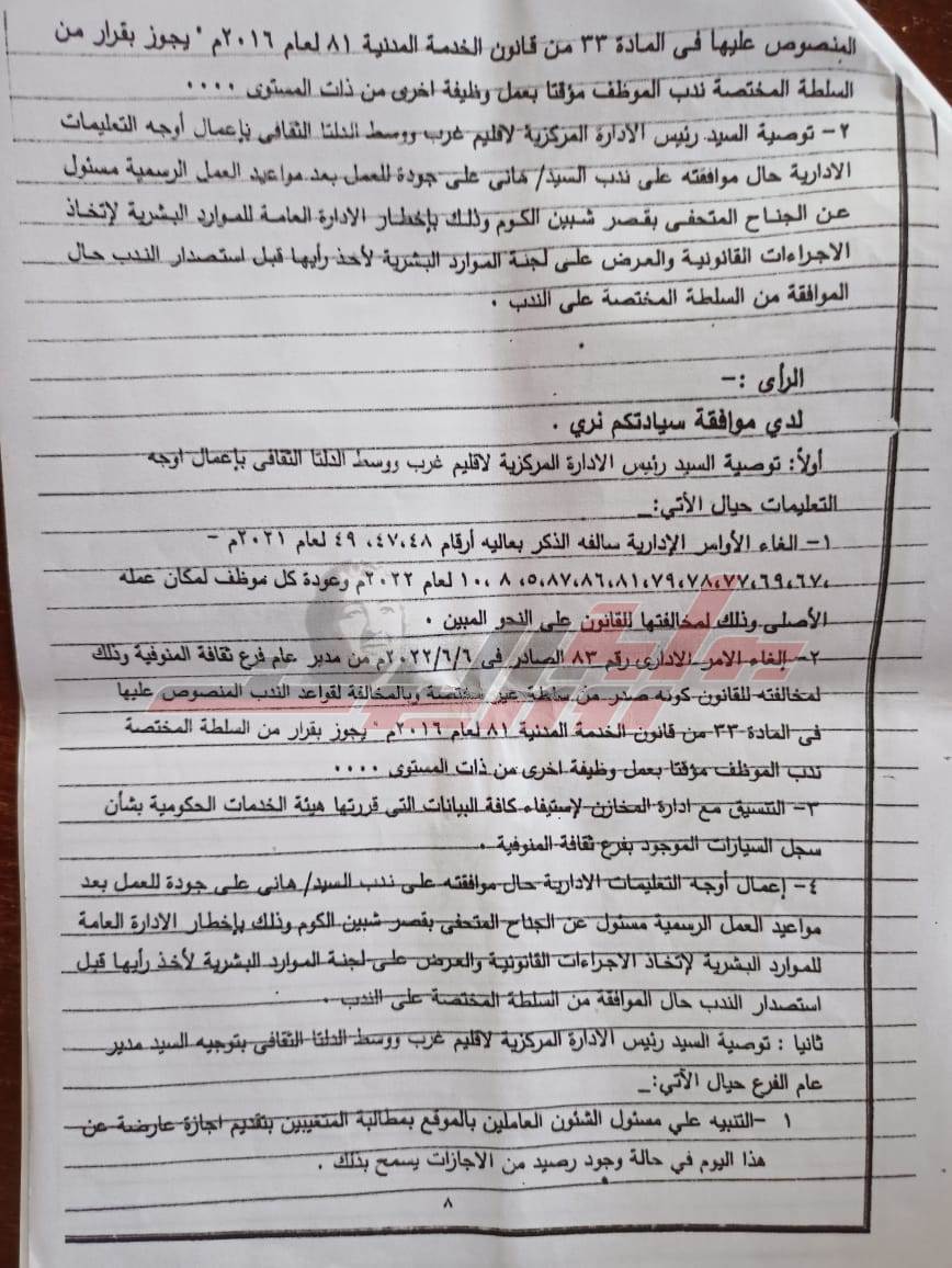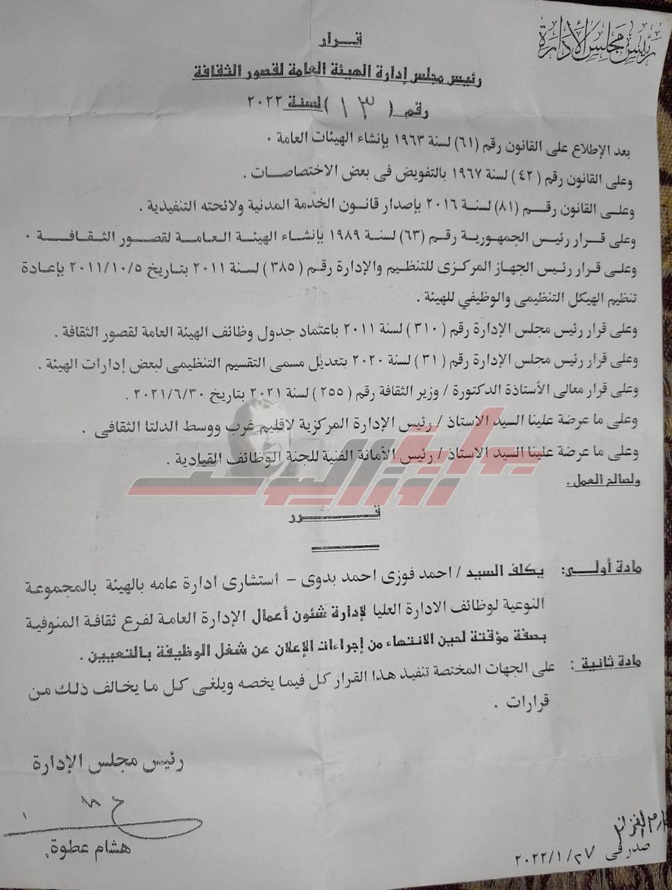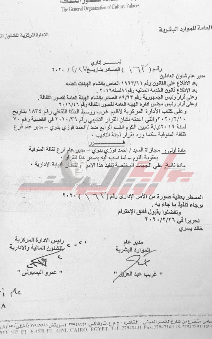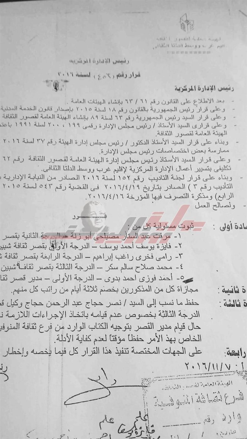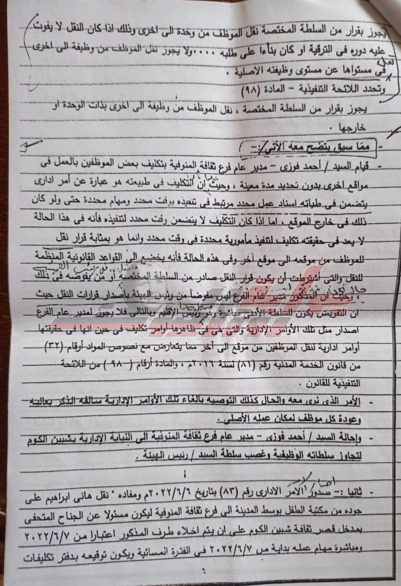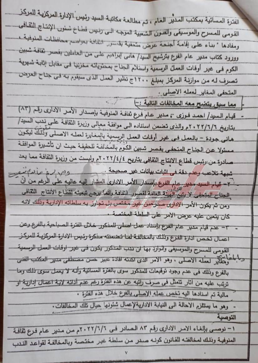 عاجل وبالمستندات.. الخلل الإداري يضرب «فرع ثقافة المنوفية»