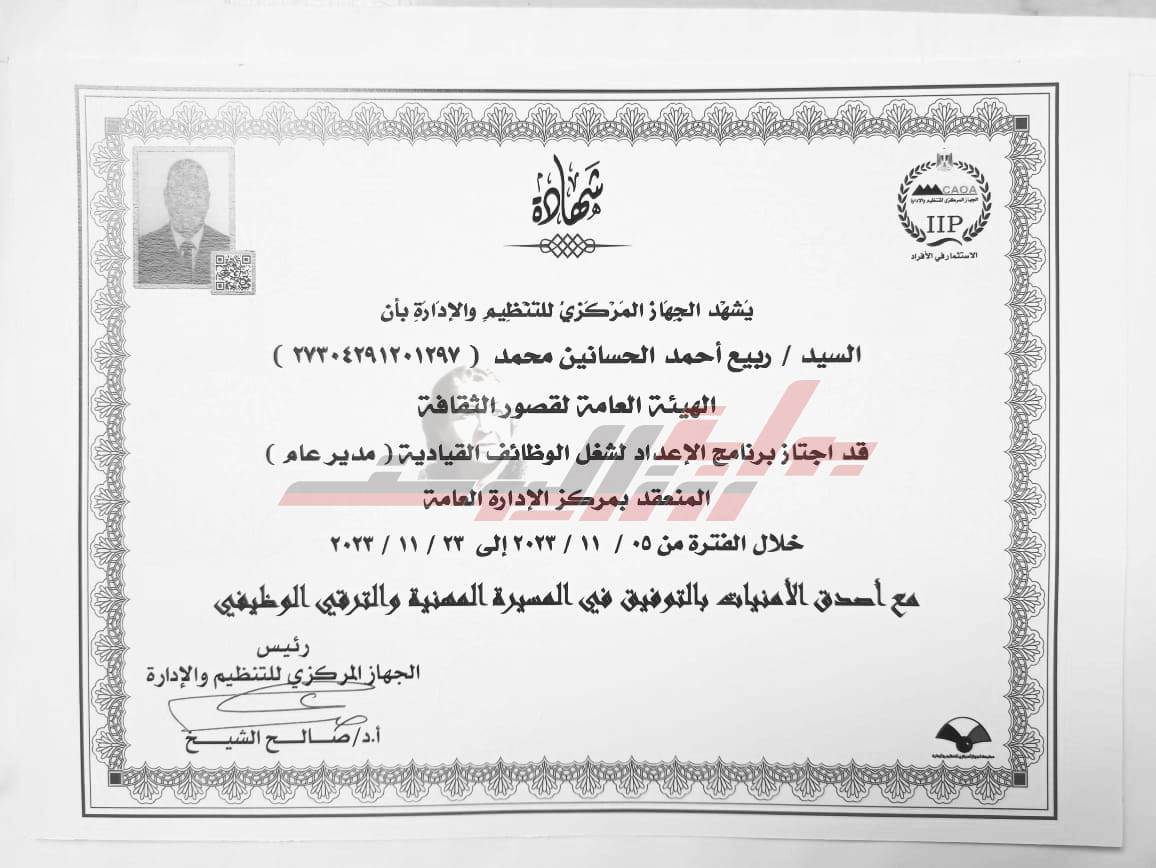 أما مدير عام فرع ثقافة المنوفية، الذي تم ترشيحه من قبل اللجنة الفنية لاختبار القيادات، فلم يصدر له قرار تعيين، وذلك على الرغم من حصوله على الدورة التدريبية "مدير عام" من الجهاز المركزي للتنظيم والإدارة مع مدير عام ثقافة الدقهلية في الفترة من ٢٠٢٣ - ١١ - ٥ إلى ٢٠٢٣ - ١١ - ٢٣م، وتم اجتياز الدورة واخذ الشهادات وتسليمها إلى الهيئة العامة لقصور الثقافة.
