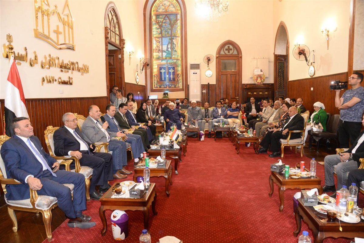 محافظ أسيوط يزور الكنيسة الإنجيلية الأولى لتقديم التهنئة بمناسبة عيد القيامة المجيد