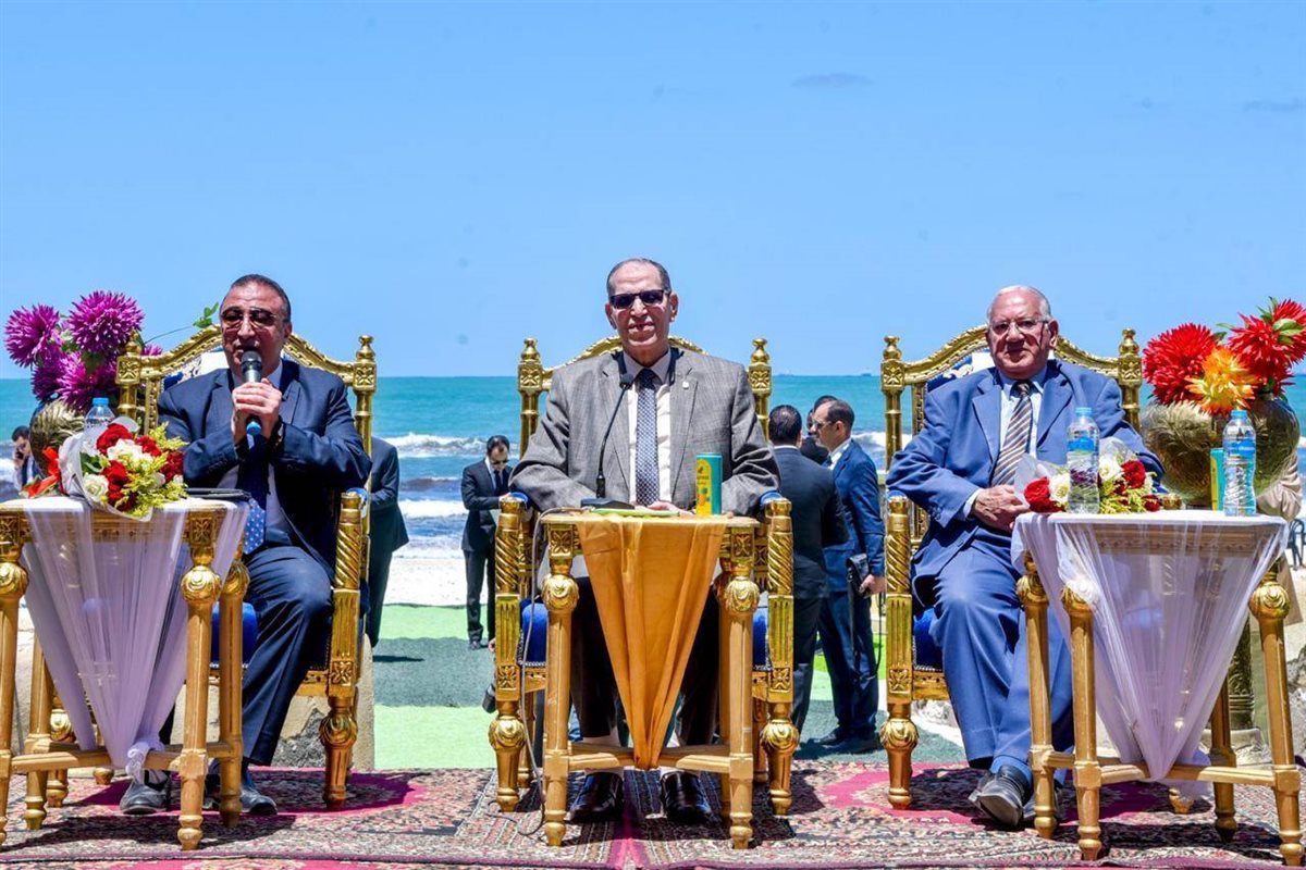 محافظ الإسكندرية ورئيس النيابة الإدارية يضعان حجر أساس شاطئ النادي البحري بالعجمي