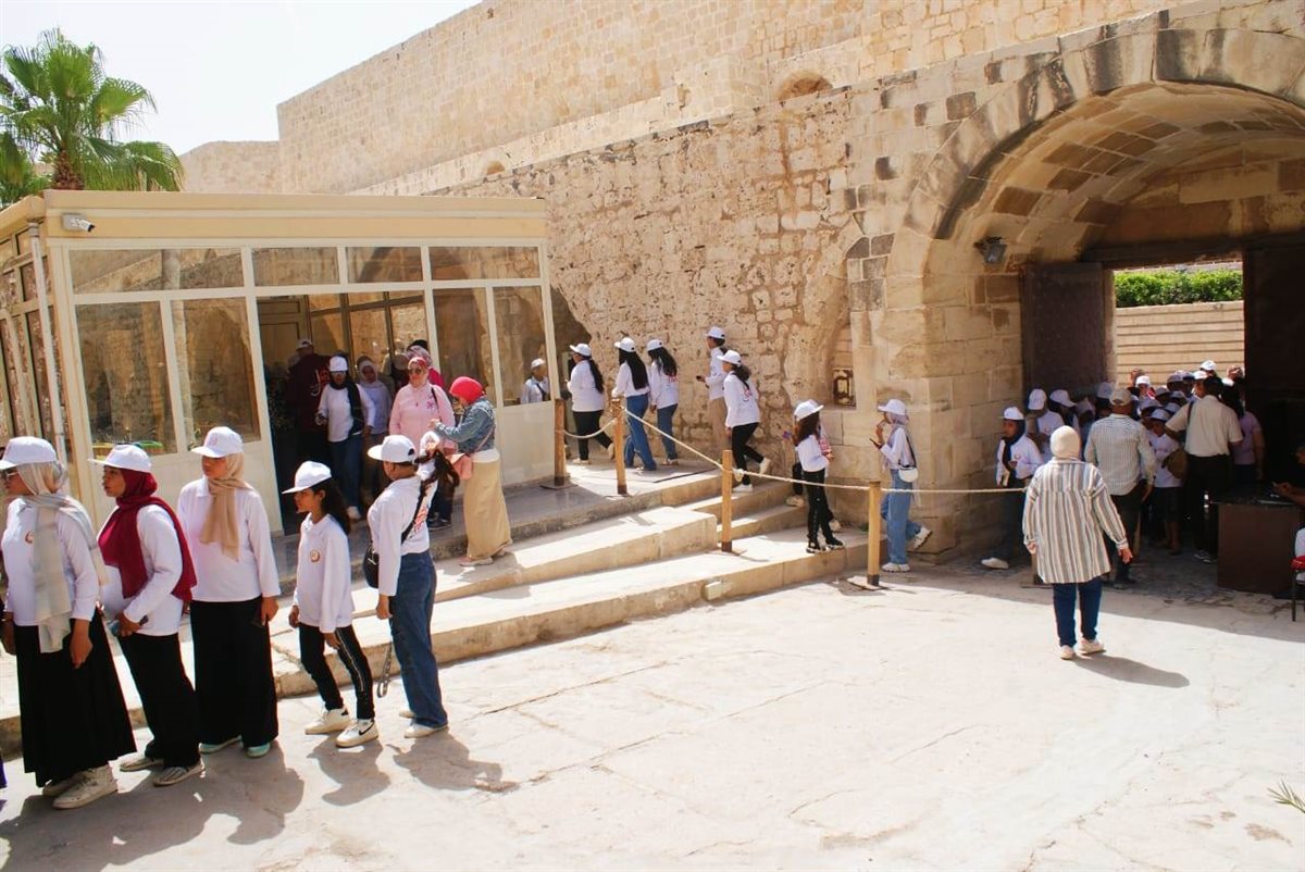 وتفقد الأطفال خلال الجولة أروقة القلعة، والمبنى الرئيس المشيد بالحجر الجيري، والسور الخارجي الذي يتخلله الأبراج الدفاعية، والداخلي المحيط بفناء القلعة، والذي يتميز بإطلالة مميزة على البحر المتوسط، وحرص الأطفال في ختام جولتهم على التقاط الصور التذكارية بالمكان تخليدا لتلك الزيارة.