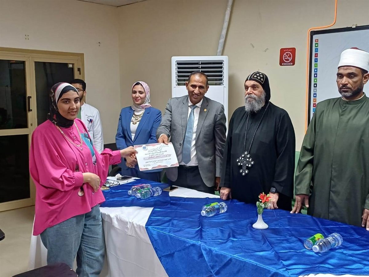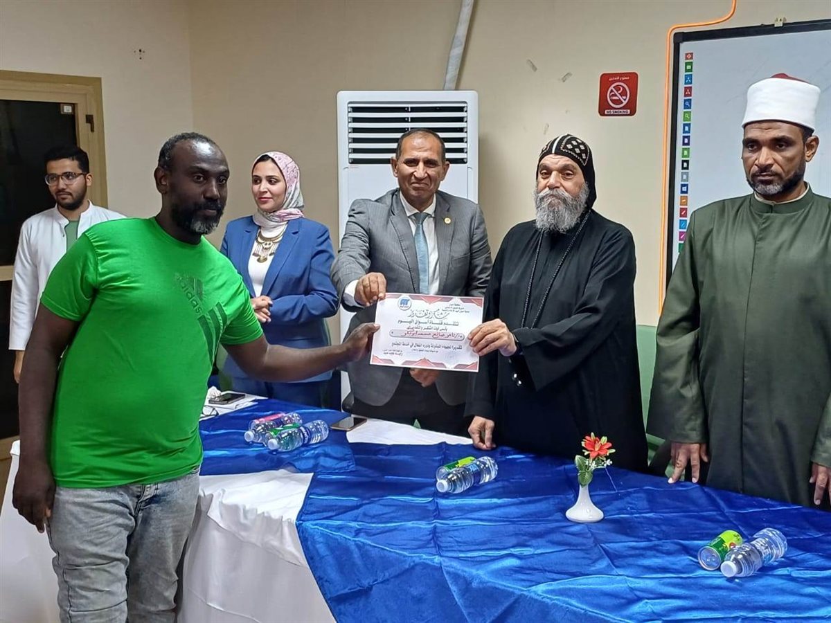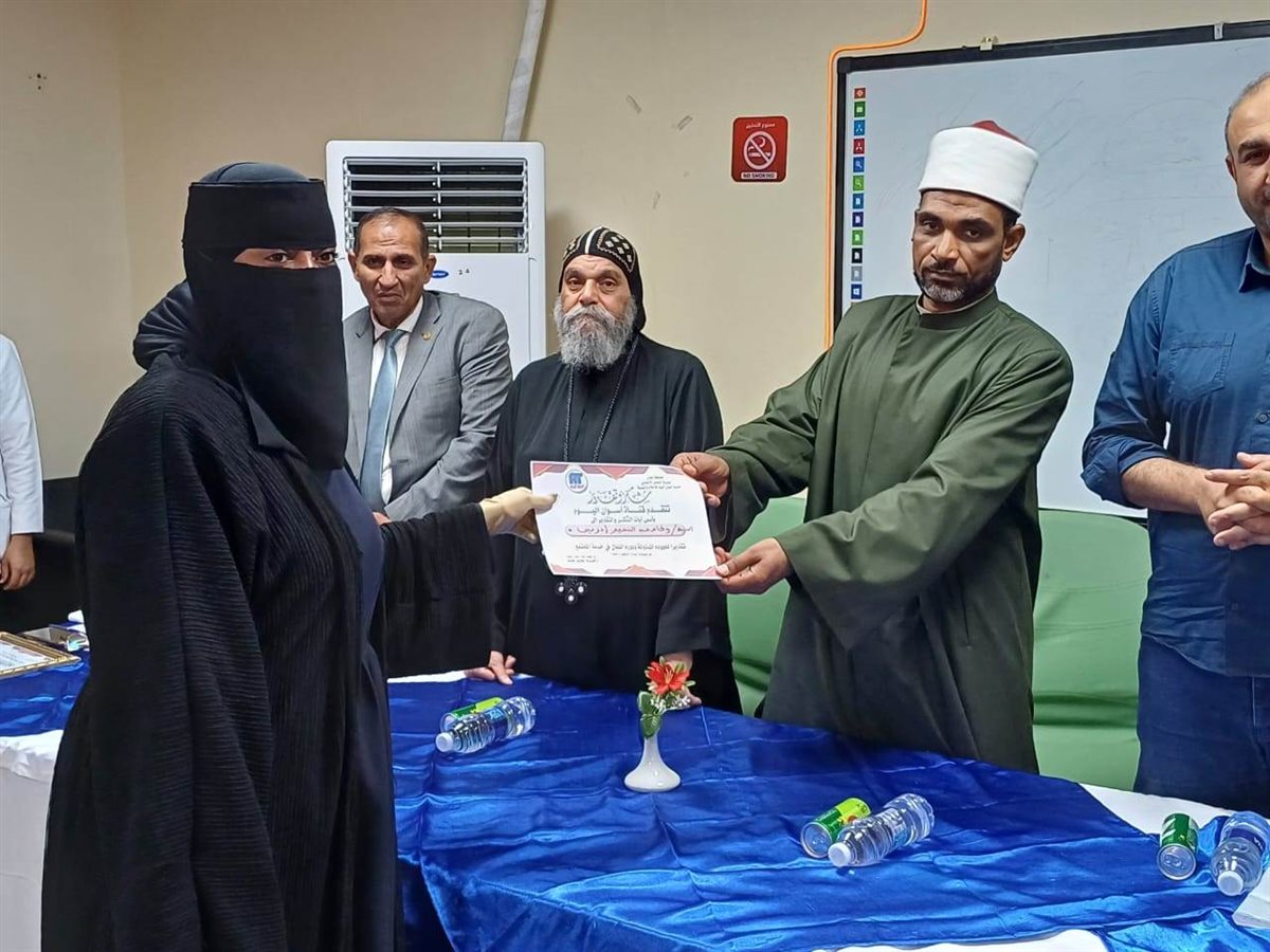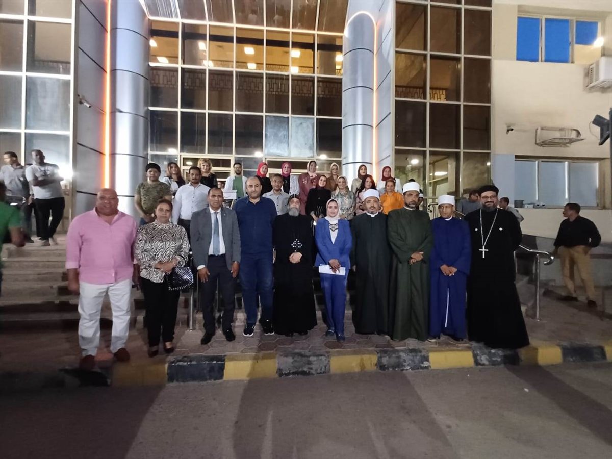 عمائم جمعهم حب الوطن.. في واحدة من أزهى صور التعايش والمحبة، وقف الشيخ يلاصق كتفه كتف القس، وارتدى كل منهم عمامته فى سيمفونية تآخٍ، ومشهد لن تراه إلا فى مصر، تحت شعار "مصر وطن يعيش فينا"، مشهد التقارب الروحي والإنساني وإرساء قيم المحبة بين رجال الأوقاف والكنيسة، شهده مستشفى أسوان التخصصي، خلال زيارة وفد مبادرة رحلات الخير الذي ضم القيادات الدينية، والشعبية، التنفيذية والمجتمعية بمحافظة أسوان، لزيارة المرضى وتقديم الدعم المعنوي والنفسي لهم، وتوجيه الشكر للقائمين على المستشفى من مديرين ورؤساء أقسام وأطباء وأطقم التمريض والإداريين والعاملين بالمستشفى.