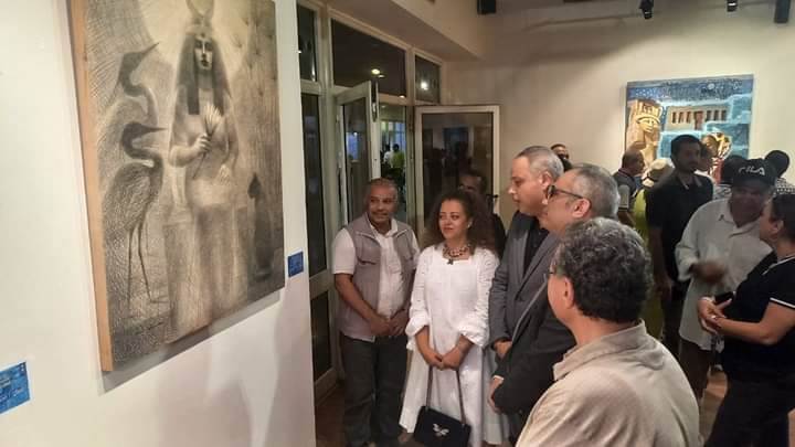 كما شارك الفنان أنيس الزغبي في المعرض بلوحتين عن حتحور وهي تتزين بتاج.
