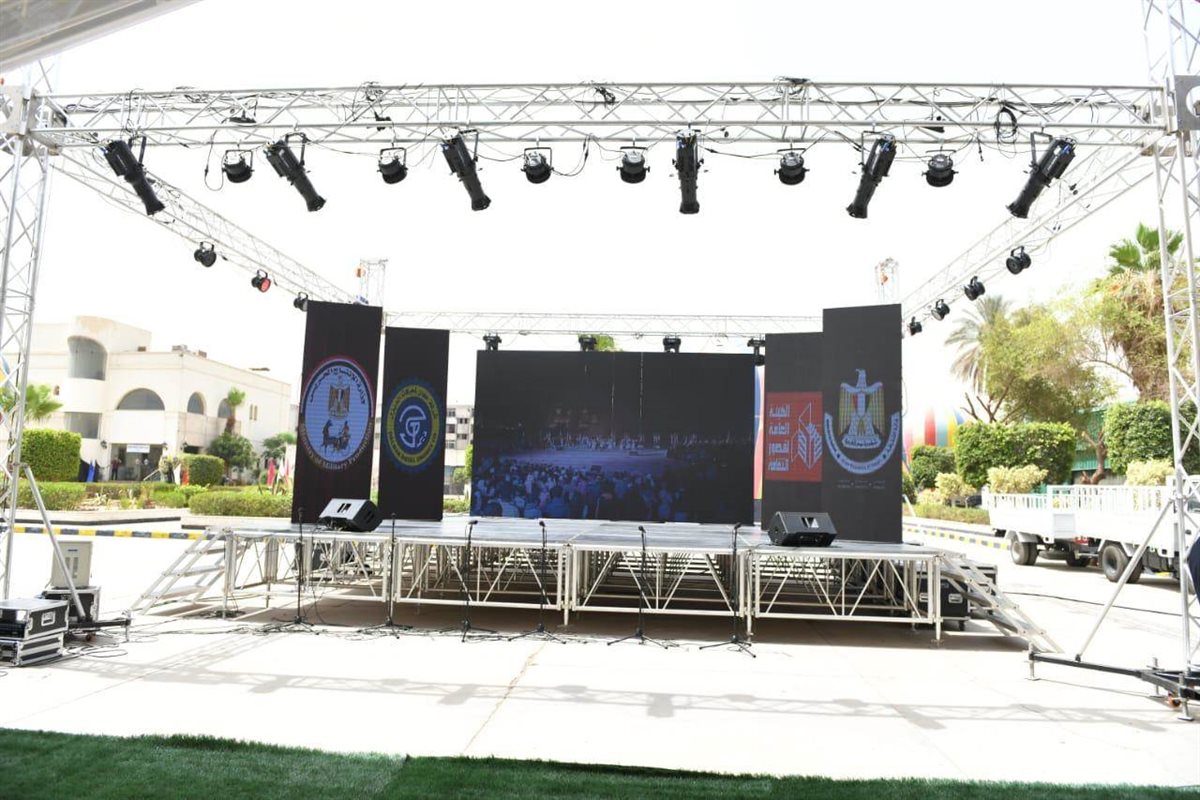 وتفقد الوزيران، المسارح الثمانية بعد انتهاء تجهيزها بواسطة شركة حلوان لمحركات الديزل، وذلك بما تشمله هذه المسارح من معدات إضاءة وصوت ومحول كهرباء ومسرح ومنظومة عرض وشاشات ونموذج لمسرح يتم تأسيسه بالموقع المستضيف للفعالية.