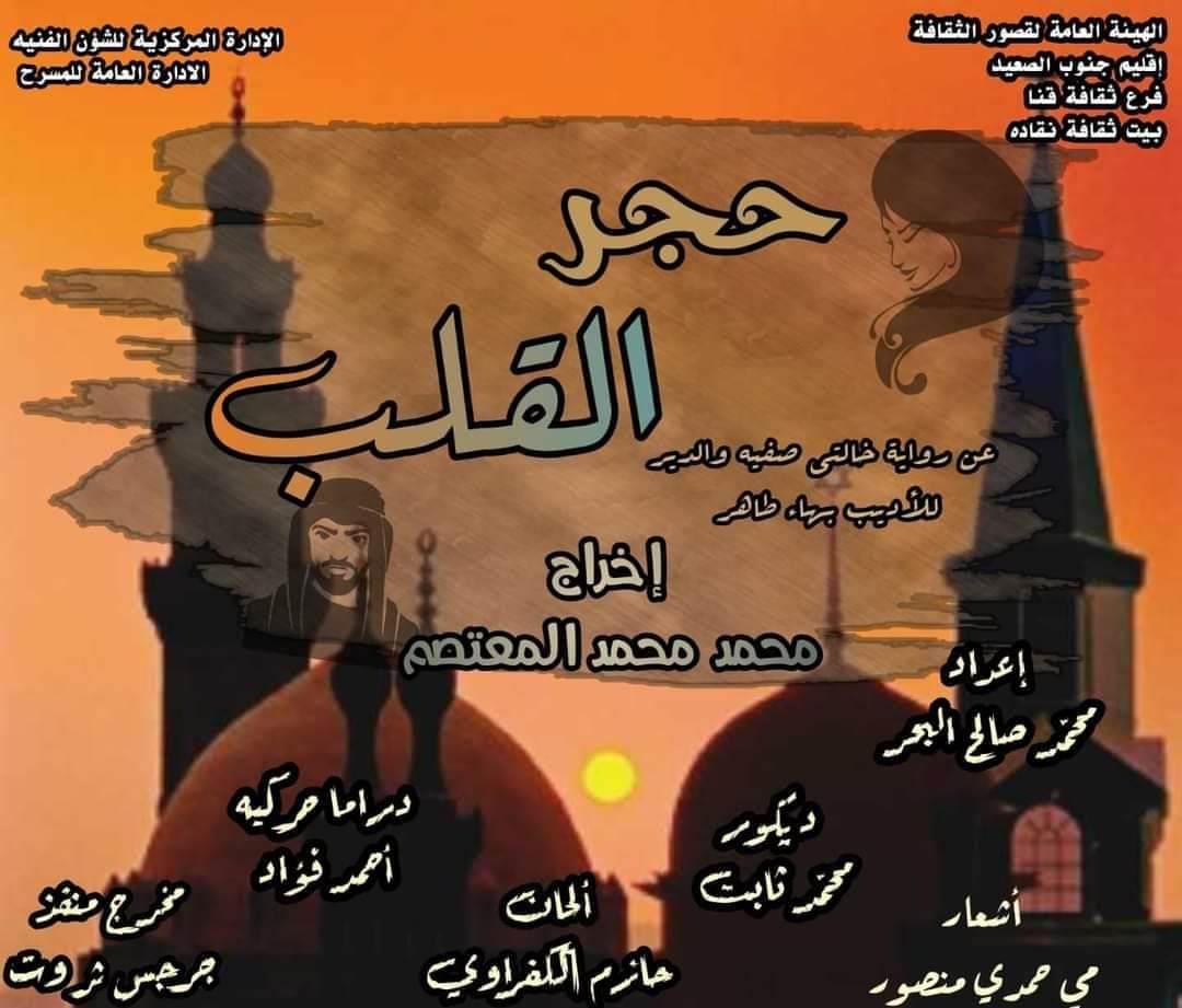 كما استقبل مسرح القصر العرض المسرحي "حجر القلب" لبيت ثقافة نقادة، التابع لفرع ثقافة قنا برئاسة أنور جمال، حيث إن أحداث العرض مستوحاة عن رواية الكاتب الكبير بهاء طاهر، وتتناول قصة تدور أحداثها في صعيد مصر عن صفية التي ترتبط بحربي ولكن تتزوج خاله وتحدث مشاكل ويقتل الخال ويسجن حربي وتربى ابنها حسان لأخذ ثأر أبيه، ويحدث غير المتوقع، وذلك للتأكيد على فكرة الوحدة الوطنية بين أفراد الشعب لمواجهة التحديات والمؤامرات الخارجية.