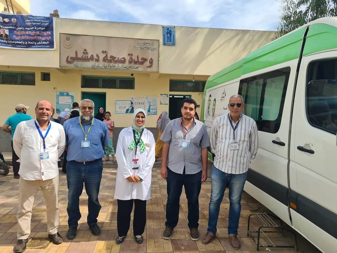 نظم فريق القوافل الطبية العلاجية بمديرية الصحة بالبحيرة قافلة طبية مجانية بقرية دمشلي بكوم حماده للكشف على المرضى غير القادرين والمحرومين من الرعاية الصحية وصرف علاجهم بالمجان وذلك في إطار خطة الدولة وجهود محافظة البحيرة لتكثيف عمل القوافل الطبية المجانية وتقديم الخدمات الصحية المتميزة والاهتمام بالمناطق المحرومة من الخدمة الطبية بالقرى والعزب والنجوع. وتنفيذًا لتوجيهات الأستاذ الدكتور خالد عبد الغفار وزير الصحة والسكان والدكتورة نهال بلبع نائب محافظ البحيره بتكثيف عمل القوافل الطبية العلاجية.